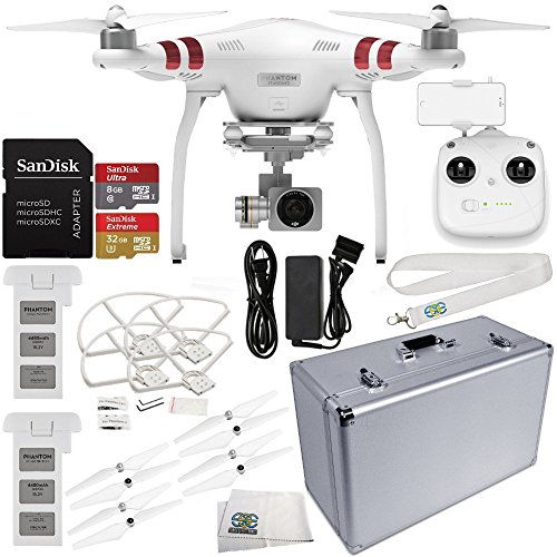 DJI Phantom 3 Standard with 2.7K Camera and 3-Axis Gimbal & Manufacturer Accessories + Extra DJI Battery + SSE Aluminum Hard-Shell Case + Multi-Battery Charging Board for DJI Phantom 3 + MORE