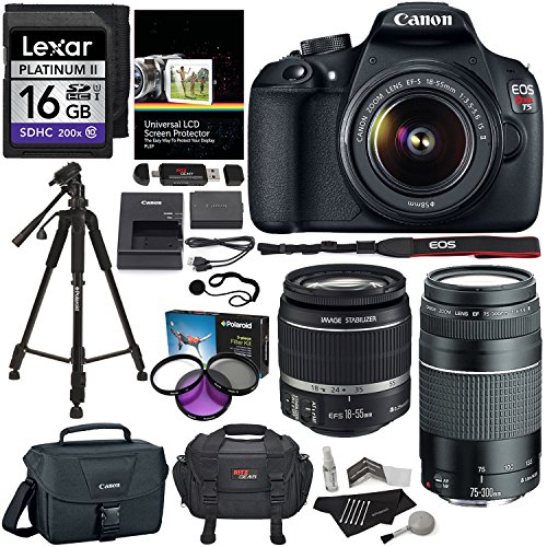 Canon EOS Rebel T5 Digital SLR Camera, EF-S 18-55mm is II Lens, EF 75-300mm f/4-5.6 III Lens, Canon Bag, Lexar 16GB, Filter Kit and Accessory Bundle