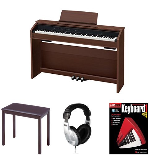 Casio PX860 Brown Privia Digital Home Piano Bundle with Casio CB7 Bench, Behringer Headphones, and FastTrack Music Instruction Book
