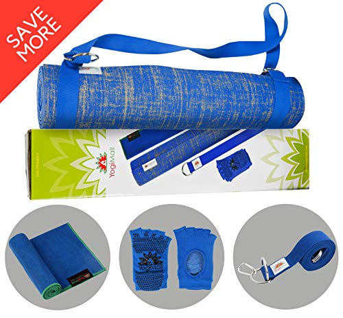 YogiMall Natural Jute Yoga Mat Kit - Includes Non-Slip Yoga Socks, Cotton Strap & Hand Towel - Eco Friendly, Reversible, Non-Toxic and SGS Certified – Most Versatile, Beautiful and Odorless Yoga Set