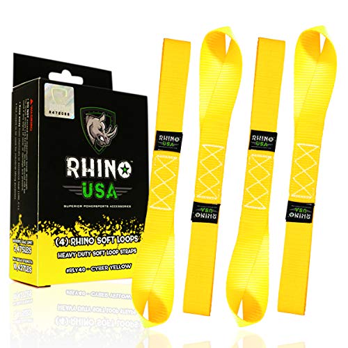 RHINO USA Soft Loops Motorcycle Tie Down Straps (4pk) - 10,427lb Max Break Strength 1.7" x 17" Heavy Duty Tie Downs for use with Ratchet Strap - Secure Trailering of Motorcycles, Kayak, Jeep, ATV, UTV