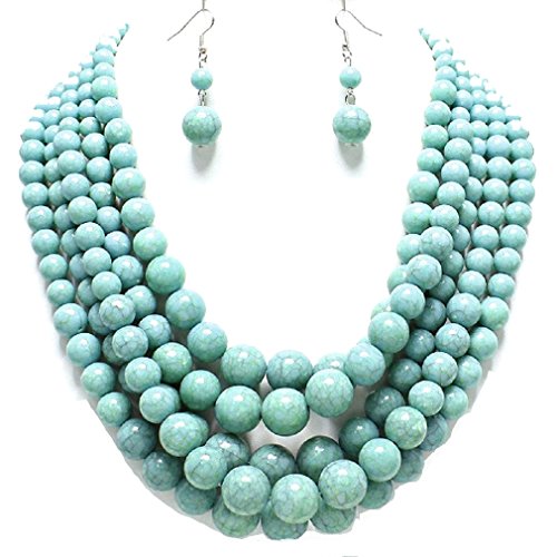 Affordable Wedding Jewelry Statement Layered Strands Turquoise Stone-Simulated Pearl Beads Necklace Earrings Set Gift Bijoux