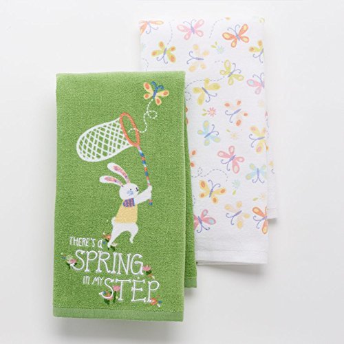 "There's a Spring in My Step" Kitchen Dish Towels 2 Pack for Spring, Chasing Butterflies