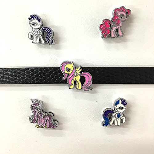 Set of 10 Pc Mixed Color Little Pony Slide Charm and 10 Pc Mix Color Bracelet Fits 8mm Wristband for Jewelry /Crafting