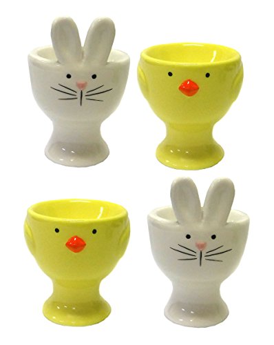 Ceramic Chick & Bunny Easter Egg Display Cups - 2.5" (Set of Four)