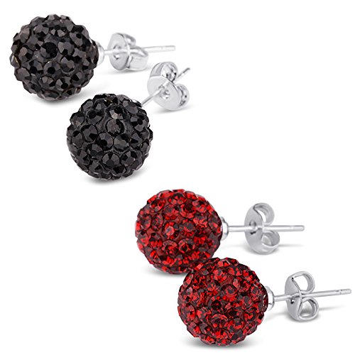 Sterling Silver 6mm each 925 Black & Simulated Garnet CZ Crystal Bead Ball Combo Stud Earrings