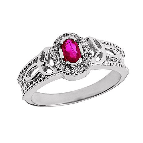 10k White Gold Ruby and Diamond Trinity Knot Ladies Proposal Ring