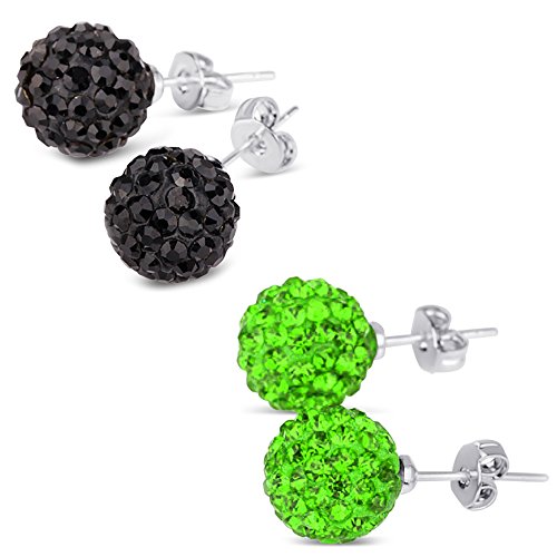 Sterling Silver 6mm each 925 Black & Lime Green CZ Crystal Bead Ball Combo Stud Earrings