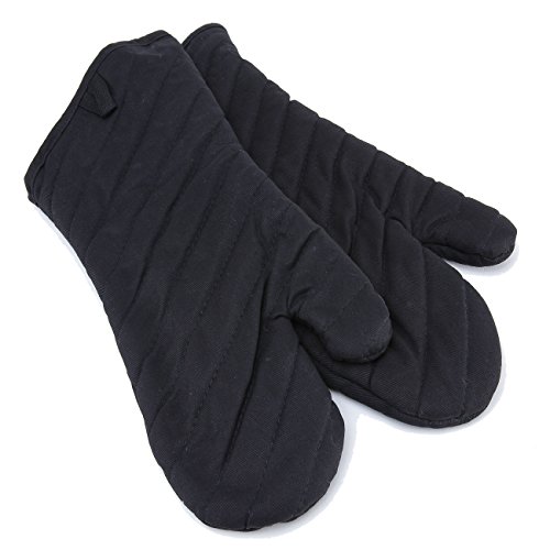 Proteove Pack of 2 Flame Retardant Quilted Oven Mitts,Extra Long Heat Resistant to 400 Degree Fahrenheit,Black