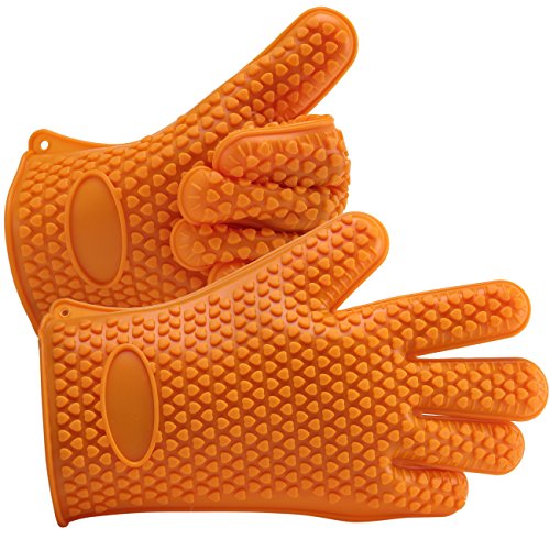 Proteove Silicone Heat Resistant Oven Mitts Gloves for Grilling BBQ, Cooking, Baking, Smoking & Potholder,5-Finger Anti Slip Grip,One Size Fits Most, Pack of 2, Orange