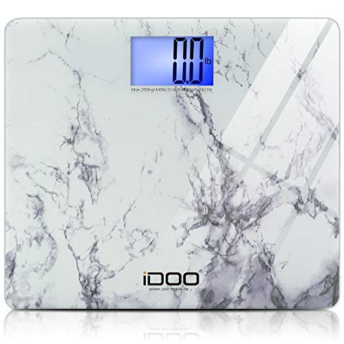 iDOO High Precision Digital Bathroom Weight Scale 440 Pound Capacity, Ultra Wide Heavy-duty Platform with Elegant Marble Design