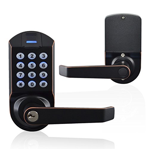 ARDWOLF A1 Fingerprint Door Lock, Keyless Biometric Keypad Lock, with Reversible Lever and Automatic Locking, No Drills Needed - Aged Bronze