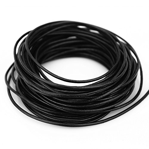 LolliBeads (TM) 2 mm Genuine Round Leather Cord Braiding String Black 10 Meters (10 Yards)