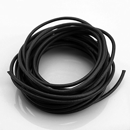 LolliBeads (TM) 3 mm Genuine Round Leather Cord Braiding String Black 5 Meters (5 Yards)