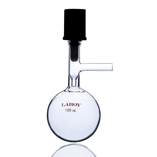 Laboy HMF012504 Glass 100 mL Reaction Schlenk Round Bottom Flask with 0-4 mm High Vacuum Valve