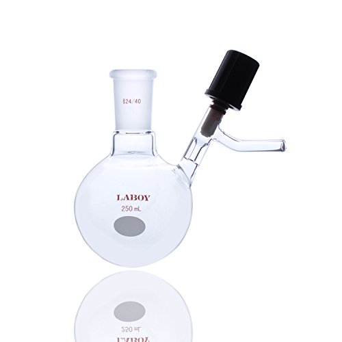 Laboy HMF050209 Glass 500 mL Air Free Reaction Schlenk Flask with 0-4 mm High Vacuum Valve and 24/40 Joint