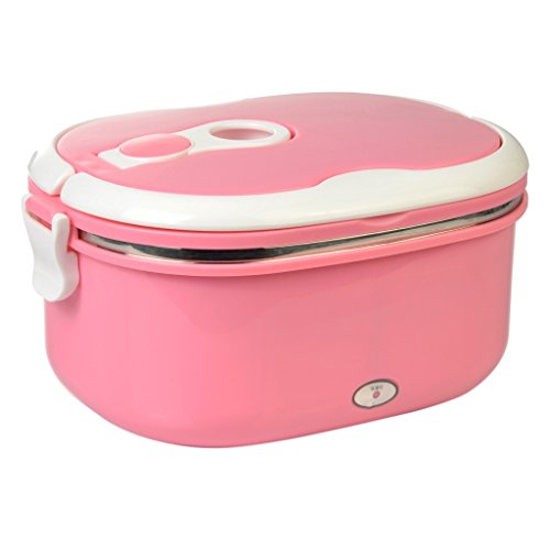 Crusar 12V 34-ounce Portable Electric Heating Lunch Box Food warmer Meal heater Stainless Steel Container Pink