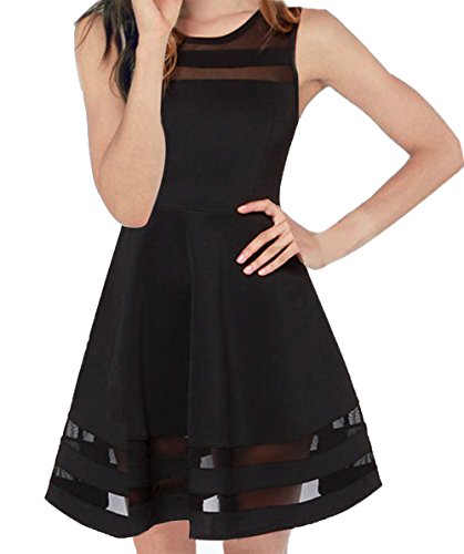 FACE N FACE Women's Mesh Slim Sleeveless Short Mini Flare Dress