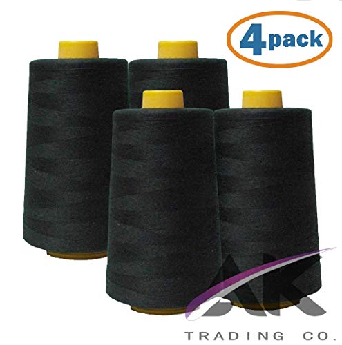 AK Trading 4-Pack Black All Purpose Sewing Thread Cones (6000 Yards Each) of High Tensile Polyester Thread Spools for Sewing, Serger Machines, Quilting, Overlock, Merrow and Hand Embroidery