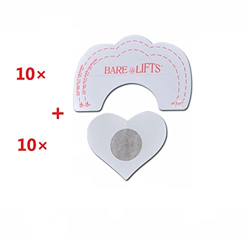 Sinlifiu 10 x Nipple Pasties Heart Cover & 10 x Bra Lift Tape Adhesive Disposable (Heart)