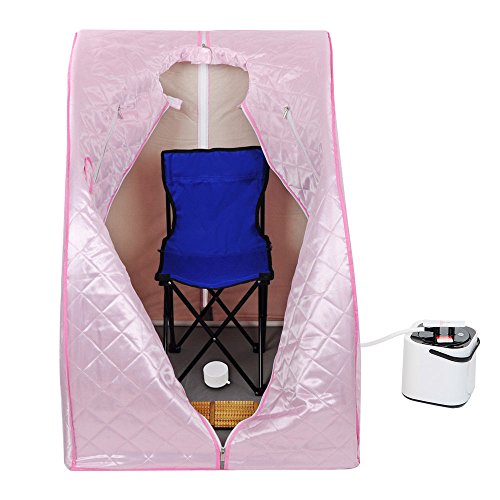 2L Portable Personal Steam Sauna Tent SPA Detox Weight Loss Stress Fatigue Power 110 Volts w/ Folding Chair Pink Herbal Box for Relax Foot Massager Fitness Enthusiasts