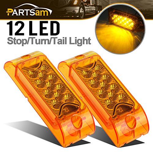 Partsam PAIR 6" Amber LED Reflective Rectangle Clearance Side Marker Light Trailer 13LED, 6x2 trailer lights, Faceted led marker lights