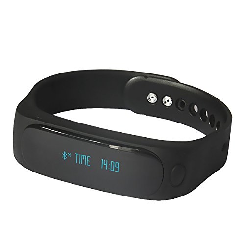 Otium Fitness Tracker, Fit Bluetooth 4.0 IP57 Waterproof Smart Bracelet Sports Wristband with Pedometers Incoming Calls/SMS Notice Sleep Monitor Anti-Lost for Android iPhone Smart Phone (Black)