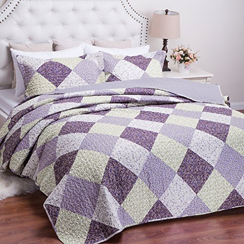 Bedsure "Old Villa Printed Quilt Set - Bedspread and Coverlet, Quilt and Sham, Hypo-Allergic and Lightweight - King(106"x96"), Lilac