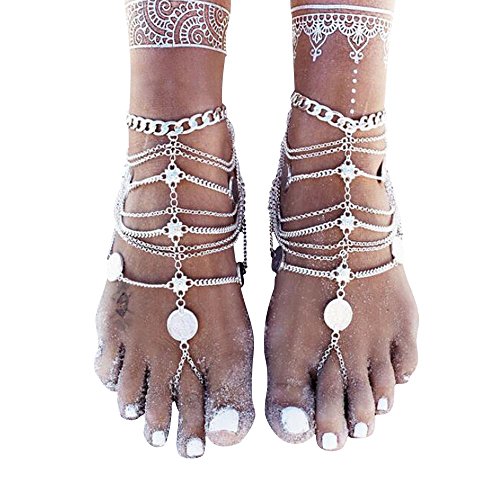 Superpark Chain Barefoot Sandals Bridemaids Wedding Jewelry Toe Ring Anklets (silver)
