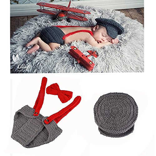 Yarra Modes Newborn Baby Boy Costume Crochet Outfits Photography Props Cap Beanie with Suspenders Bowtie Diaper (0- 4months)