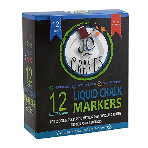 JC Crafts Liquid Chalk Markers With Reversible Tip, Huge Variety Pack of 12, Assorted Colors