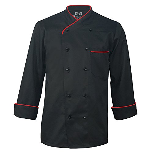 10oz apparel Long Sleeve Black Chef Coat with Red Piping