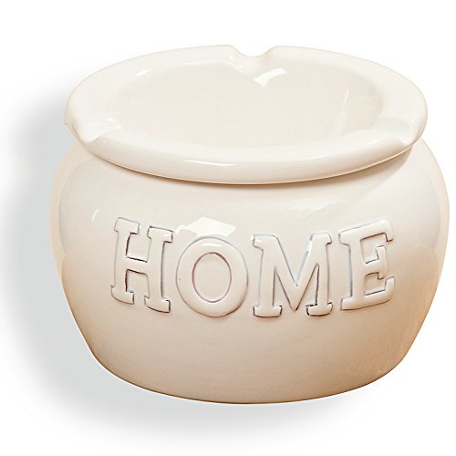 Whole House Worlds The Rustic White Home Outdoor Ash Tray, 2 Pieces, Glazed Stoneware