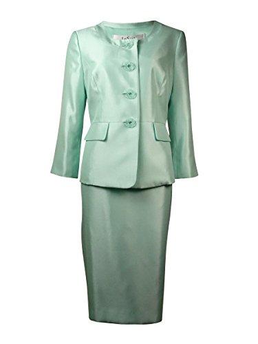 Le Suit Womens Petites The Hamptons 3/4 Sleeves 2PC Skirt Suit Green 12P