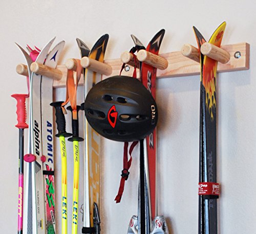 4 Pair Ski Storage Rack | Wall Mount | Hanging Organizer for Skis and Poles