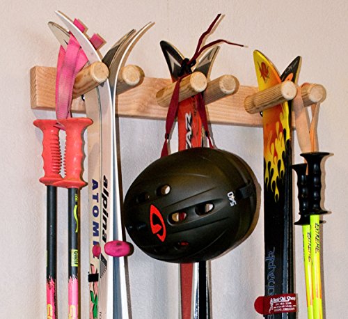 3 Pair Ski Storage Rack | Wall Mount | Hanging Organizer for Skis and Poles
