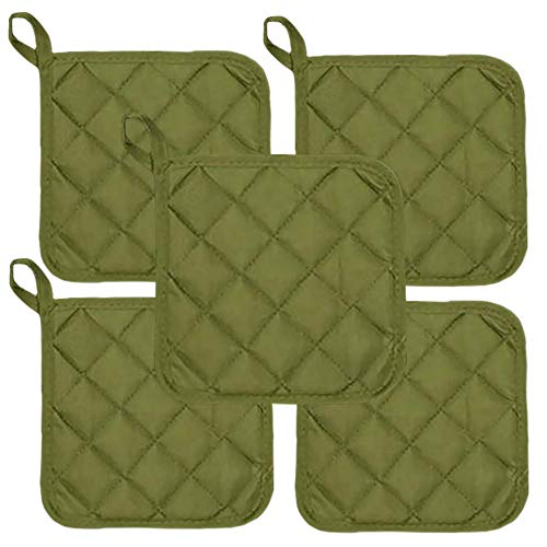 Sage Green Heat Resistant Pot Holders 6.5" Square Solid Color (Pack of 10) | Multipurpose Quilted Hot Pads Pot Holders For Everyday Quality Kitchen Cooking Chef Linens