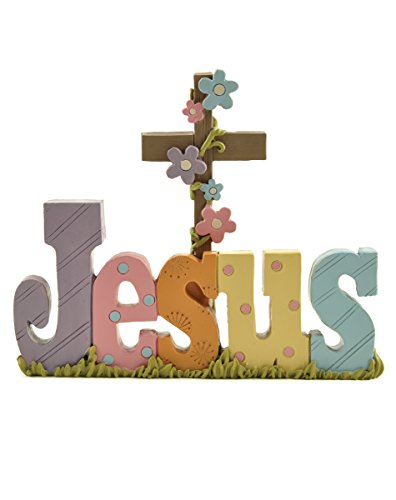 Polka Dot Jesus Cross 4 x 5 inch Resin Stone Inspirational Table Top Decoration