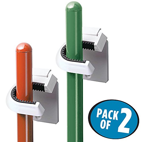 mDesign Broom and Mop Holder - Set of 2, Self-Adhesive/Wall Mount, White