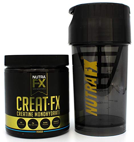 NutraFX Micronized Creatine Monohydrate Powder - With High-Tech Shaker Bottle - All Natural Pre Workout Energy Boost and Muscle Building Supplements (300g - 60 Servings)