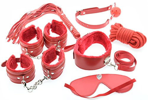 AnE Toys Best Pu Leather Red Color love Slave Bondage Fetish 9 Piece Sexy Toy Play Set Kit
