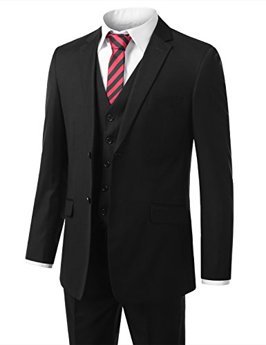 MONDAYSUIT Men Modern Fit 3-Pcs Suit Blazer Jacket Tux Vest Trouser Charcoal
