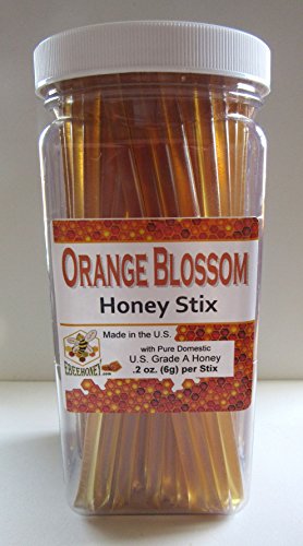Floral Honeystix - Orange Blossom - 100% Honey - Pack of 100 Stix - Honey Sticks (100 Orange Blossom Honey Stix with Container)