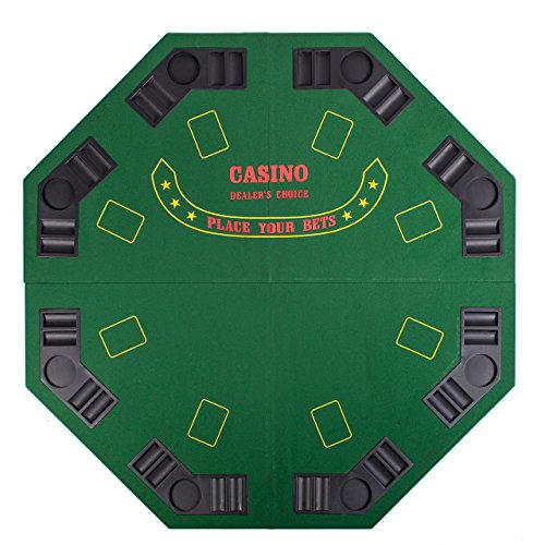 48" 4 FOLD FOLDING PRO STYLE 8 PLAYERS OCTAGON POKER TABLE TOP VELVET TABLETOP BLACKJACK TEXAS HOLDEM GAME CHOICE WITH CARRYING CASE - GREEN