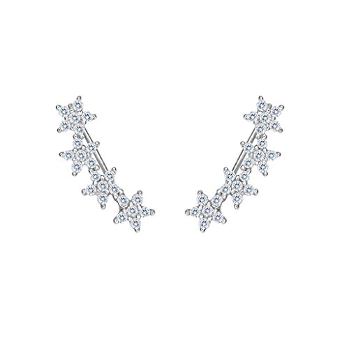 EVER FAITH 925 Sterling Silver Cubic Zirconia Hibiscus Flower Ear Sweep Cuff Hook Earrings Clear