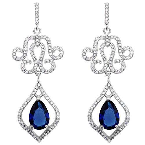 EVER FAITH 925 Sterling Silver CZ Vintage Inspired Art Deco Vine Chandelier Drop Earrings Sapphire Color