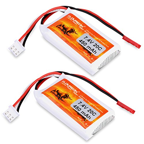 Floureon 2packs 2S 7.4V 450mAh 20C Lipo Battery (1.89 x 1.18 x 0.43 inch) for RC Quadcopter Airplane Helicopter Car Truck Boat Hobby