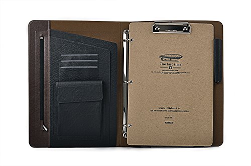 Ultra Slim ,3 Ring Binder Portfolio Case with Clipboard for organizing loose documents,Black+Coffee