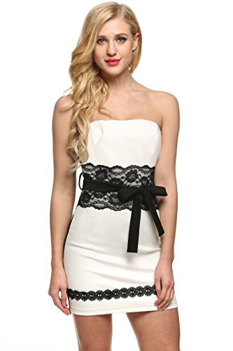 Zeagoo Women Sexy Strapless Lace Bodycon Cocktail Party Dress with Belt