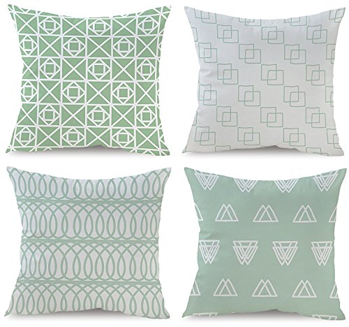 BLUETTEK Simple Decorative Throw Pillow Covers Set of 4 18 x 18 Inches, Triangle, Rings, Squares Design, Soft Velvet Accent Cushion Cases 45cm x 45cm (Blue Leaf)